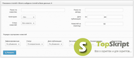 16. В админпанели в разделе редактирования новостей, для расширенного поиска, добавлена возможность выбора порядка сортировки новостей по количеству комментариев и по количеству просмотров.