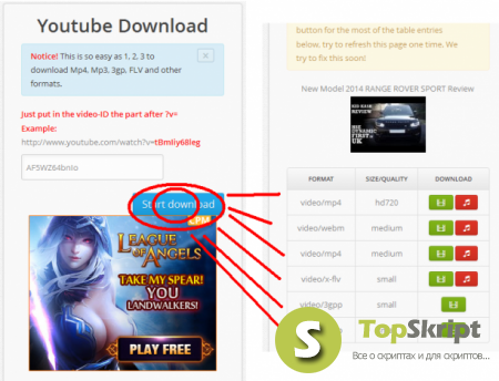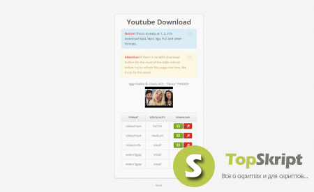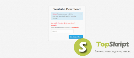 Этот скрипт включает в себя возможность сохранения видео и музыки с ютуба .Для этого достаточно ввести id видео.И нажать Start Downland.