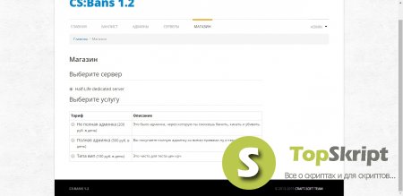 Дальше идем к нашему CS:BANS, открываем админ-панель, Веб-Сайт, Тарифы и настраиваем.