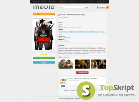 IMovie - кино шаблон для DLE 10.4, выполнен в серых тонах с использованием ярких кнопок от Bootstrap.