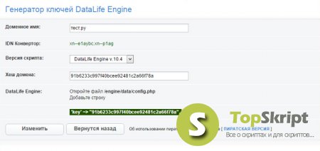 Улучшенная версия модуля DLE Hash Domain 2.0 с переработанным интерфейсом, поддержкой кириллический доменов для генерации ключей для CMS DLE 7.0 - 10.4.