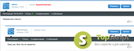 20. Для шаблона вывода комментариев (comments.tpl) добавлены новые теги [news-author] текст [/news-author], которые выводят текст, заключенный в них, если комментарий принадлежит автору данной новости, а также теги [not-news-author] текст [/not-news-author], которые выводят текст, заключенный в них, если комментарий не принадлежит автору данной новости. Тем самым вы можете визуально выделять на страницах вашего сайта, те комментарии, которые пишет автор публикации.