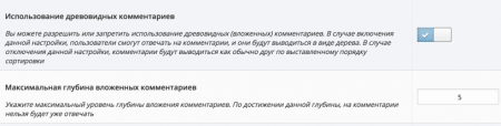 1. Добавлена новая система древовидных комментариев к новостям. Данная система комментирования, позволяет посетителям отвечать на конкретные отдельные комментарии, и выводить комментарии к новостям в виде дерева. Данная система комментирования включается в админпанели в настройках комментариев. При этом вы также можете указать максимальный уровень вложенных комментариев. При включении данной системы на сайте, мы рекомендуем вам также обратить внимание на такой параметр настроек, как количество комментариев на одну страницу. В случае использования древовидных комментариев, это будет количество именно родительских комментариев на одну страницу, а реальное количество комментариев с учетом вложенных ответов может быть больше.