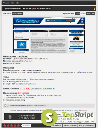 Полностью новый рип шаблона Cscontrol, полный и качественный рип всех модулей сайта со всеми новыми обновлениями. Шаблон на тематику Counter-Strike. Выполненный в темных тонах. Красивый и функциональный шаблон. Множество различных модулей.