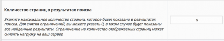 6. В настройки скрипта добавлена возможность указывать максимальное количество страниц найденных результатов поиска по сайту. Тем самым вы можете как ограничить показ найденных результатов, в целях снижения нагрузки на сервер, так и показывать все найденные результаты.