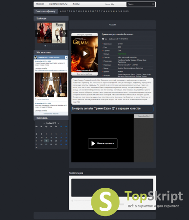 Серый кино шаблон для создания кинопортала либо сайта с сериалами