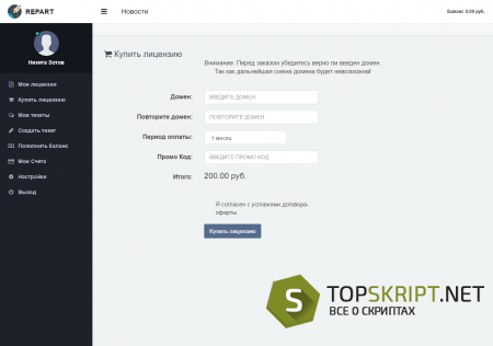 Биллинг панели для продажи скриптов хостинга RepartPanel.Ru !