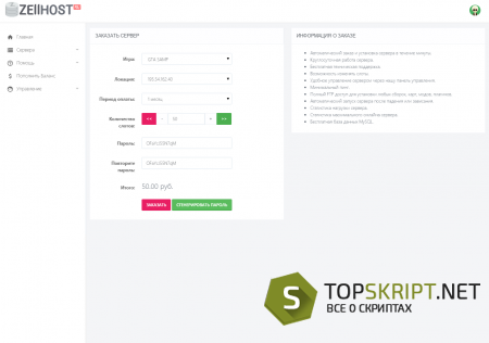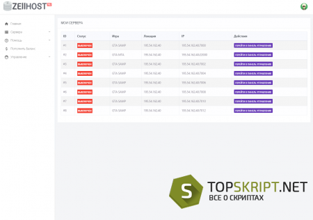 ПАНЕЛЬ УПРАВЛЕНИЯ ИГРОВЫМ ХОСТИНГОМ ZellHost
