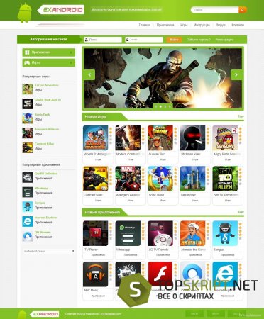 Новый адаптивный android шаблон, выполненный в двух цветах: синий, зеленый. Обязательно посмотрите видеозапись работы шаблона, так вы сможете оценить весь функционал шаблона! Мобильный шаблон ExAndroid для DLE, который отлично будет и для новостного сайта или для многих других тематик сайта. Он адаптирован под последнюю версию DLE, и по этой причине мы рекомендуем Вам обновить движок. Шаблон dle простой работает быстро и корректно во всех сегодня популярных браузерах, в чём мы убедились лично.