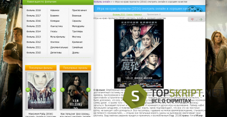 После установки данного скрипта,Вы имеете полноценный сайт-онлайн кинотеатр. В базе за 10 мин будите иметь более 1000+ фильмов 2014-2017 годов. автонаполнение происходит автоматически,без вашего участия. С установкой скрипта справится даже новичок, так как в архиве есть подробная инструкция по установке и настройке