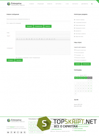 Современный адаптивный корпоративный шаблон для DLE, построенный на базе современных HTML5/CSS3/jQuery методов, что несомненно сказывается на отличной работе на любых типах устройств: настольные ПК, ноутбуки, планшеты, телефоны. Данный шаблон подойдет для бизнес сайтов, сайтов портфолио, студий, блогов. Зеленый цвет шаблона меняется на любой другой в пару кликов. Чтобы ощутить анимационные эффекты рекомендую посмотреть видеозапись работы шаблона.
