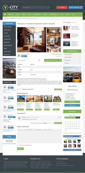Представляю вашему вниманию адаптивный шаблон для городского портала на DLE. Шаблон состоит из 3-х колонок, что, несомненно, является большим плюсом для удобного размещения рекламы. Особенностью шаблона можно отметить реализованный стандартными функциями движка раздел с объявлениями.