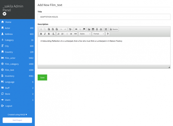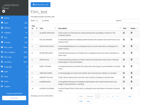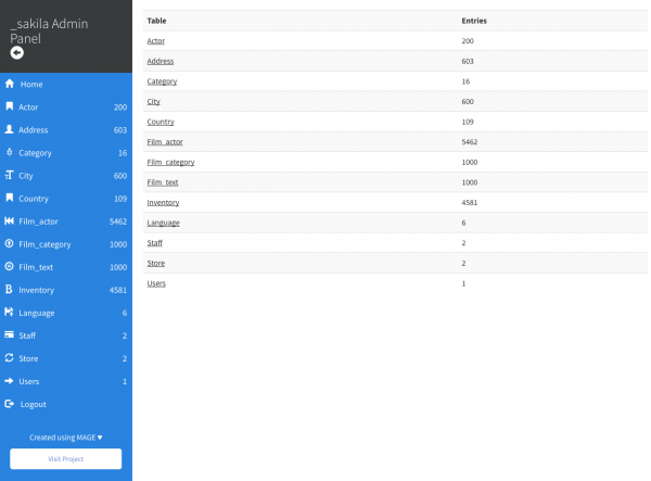 MAGE :: PHP MySQL Admin Panel Generator