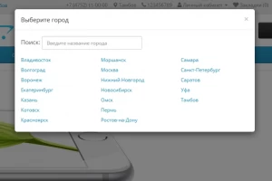 ✓ Определение города пользователя по IP с возможностью поменять его вручную