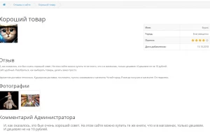 - Комментирование отзыва администратором сайта