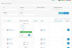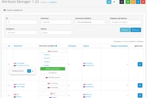 Attribute Manager облегчает работу с атрибутами (характеристиками), добавляя поиск, фильтры и возможность быстрого редактирования прямо в списке.