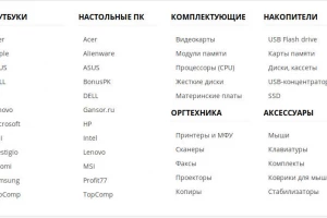 - Производитель - возможность показа списка производителей: имя производителя, логотип, имя с логотипом или список продуктов по производителю (производителями)