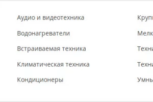 Пример внешнего вида меню с изображениями и типом подкатегории, без показа изображений категорий: