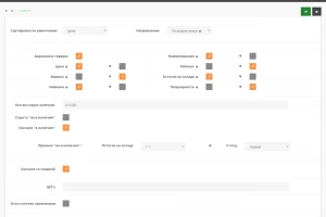 Так же имеется возможность управлять кол-вом товара на страницу и скрывать товары не в наличии или перемещать их в конец