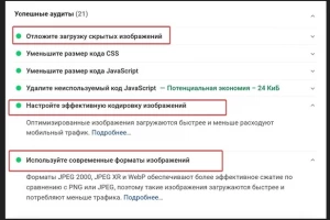 В итоге гугл оптимизацию изображений оценит положительно, вы увидите отчет в блоке "успешные аудиты"