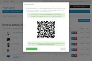 - возможность поделиться содержимым корзины по ссылке (с поддержкой QR code)