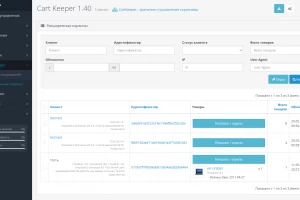 CartKeeper избавляет от проблем исчезновения товаров / очистки корзин незарегистрированных покупателей и позволяет хранить гостевые корзины наравне с корзинами зарегистрированных покупателей, с возможностью просмотра и управления имеющимися корзинами.