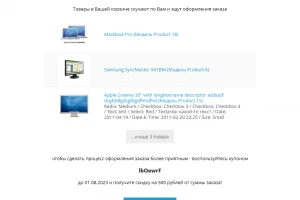 - рассылка писем зарегистрированным клиентам о брошенных корзинах