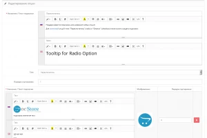 Также есть возможность добавить подсказки для опций и их значений (для типов checkbox и radio) на странице товара.