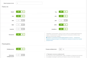 ✔ выбор лимита выводимых результатов для товаров, категорий и брендов в списке