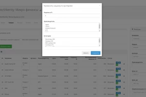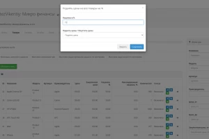 - Возможность массово поднять/опустить цены на все товары на определенный процент
