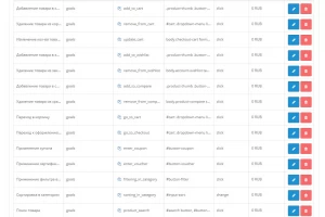 После установки модуля, вам сразу будет доступно 25 готовых целей и останется лишь скопировать их идентификаторы в настройки на сайте Google Analytics. Однако, если у вас установлен нестандартный шаблон или другие модули влияющие на верстку сайта, то некоторые цели могут не работать и потребуют перенастройки.