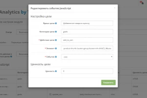 Модуль позволяет создавать цели типа "jаvascript-событие" легко и без вмешательства в код сайта. Такой тип целей как "jаvascript-событие" позволяет отслеживать практически любые произвольные события на сайте (нажатие кнопки, заполнение формы и пр.), при выполнении которых не меняется URL страницы. Если URL меняется, используйте тип цели "Посещение страниц", они настраиваются непосредственно на сайте Google Analytics.