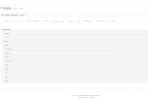 8) Добавить товарам связи с автомобилями. Для этого нужно зайти в товар в админке, и открыть вкладку "Авто". Галочками отметить нужные значения, для которых товар должен появляться в выдаче. Если выбрана марка, но не выбрана модель, то товар будет привязан ко всем моделям этой марки. Этот же механизм действует и на поколения, серии, модификации.
