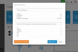 количество товаров, категорий, производителей и текущий размер кэша модуля