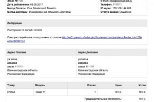 - Возможность использования инструкции к оплате в письме о заказе (использование переменных таких как «номер заказа», «ссылка на оплату», «сумма заказа», «комиссия» и html тегов)