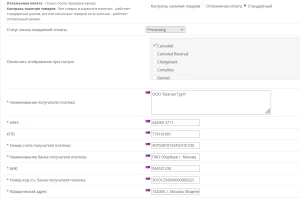 - Возможность использования инструкции к оплате при оформлении заказа (использование переменных таких как «номер заказа», «ссылка на оплату», «сумма заказа», «комиссия» и html тегов)