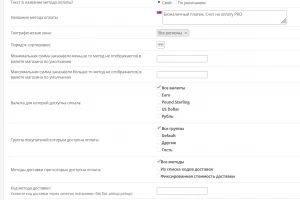 - Возможность задания максимальной и минимальной суммы заказа при котором метод не будет выводиться.