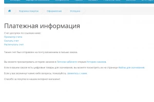 - На странице оформленного заказа, ссылки на просмотр, скачивание и печать счета или возможно в настройках задать Ваш текст и ссылки.