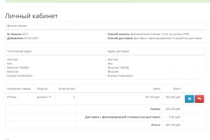 Модуль выставления счета на оплату покупателю для безналичного перевода. Прикрепляет к письму о заказе файл pdf (можно отключить в настройках) и в письме добавляется ссылка для просмотра счета, а также можно распечатать счет. Ссылка на счет кроме письма еще отображается в личном кабинете покупателя. У администратора в админ панели также доступны ссылки на просмотр, скачивание и печат