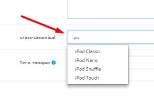 В карточке товаров появляется специальное поле в котором выбирается главный товар, на который будет ссылаться данный посредством canonical.