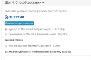 - отображение у вариантов доставки: логотипа, срока доставки, города отправления, города доставки, адреса выбранного ПВЗ, кода выбранного ПВЗ