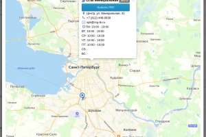 - отображение у ПВЗ на карте: адреса, режима работы, телефона, email, кода