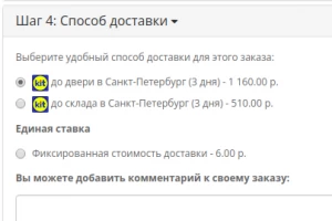- отображение у методов: логотипа, срока доставки, города отправления, города доставки