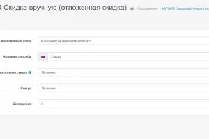 Модуль дает возможность добавить отложенную скидку и наценку вручную менеджером магазина в админ панели при редактировании заказа, тем самым уменьшить или увеличить стоимость отредактированного/созданного заказа. Скидка и наценка прописывается отдельным полем в списке заказа.