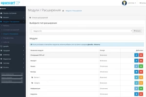Установка данного модуля производится через программу установки, встроенную по умолчанию в админку OpenCart.