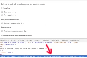 Модуль при оформлении заказа отображает способы оплаты в зависимости от выбранного способа доставки.