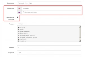 Также добавляется возможность назначения отдельных заголовков для каждого блока рекомендуемых товаров прямо в его настройках