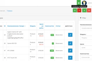 Мод облегчает работу с товарами в Opencart, позволяя включать/отключать статус товаров не заходя непосредственно в их карточки, что ускоряет процесс работы.