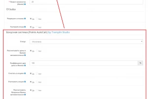Points AutoCalc v1.2 by Tramplin Studio - это полезный инструмент, который автоматически рассчитывает цену в баллах и баллы за покупку товара. Вам требуется лишь указать коэффициенты для расчета баллов из цены товара, а так же определить, необходимо ли считать цену в баллах для опций и учитывать ли опции при расчете баллов за покупку. Калькулятор бонусных баллов экономит множество вашего времени, и значительно упрощает процесс.