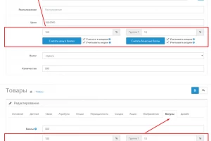 На странице создания/редактирования товара, под ценой во вкладке "Данные", появится панель с индивидуальными настройками калькулятора. Если производится редактирование товара, а баллы уже были назначены ранее, то панель появляется во вкладке "Бонусы".